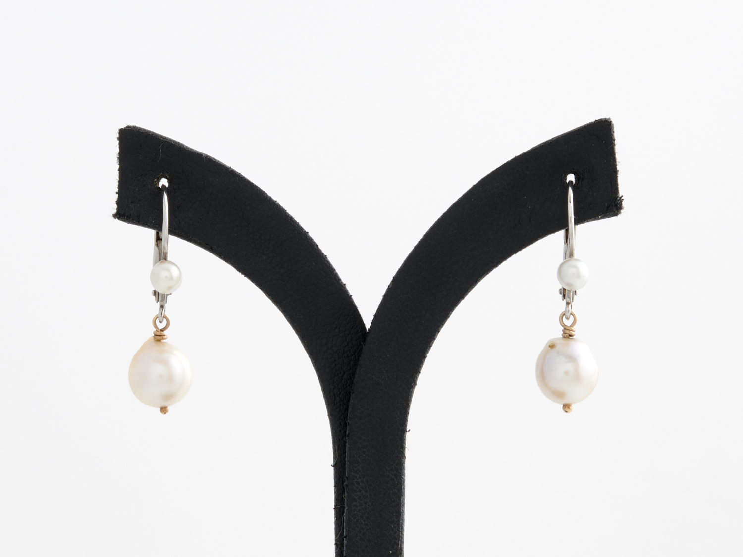 A PAIR OF CULTURED PEARL EARRINGS IN 18CT WHITE GOLD, TO EUROPEAN HOOK FITTINGS, LENGTH 28MM