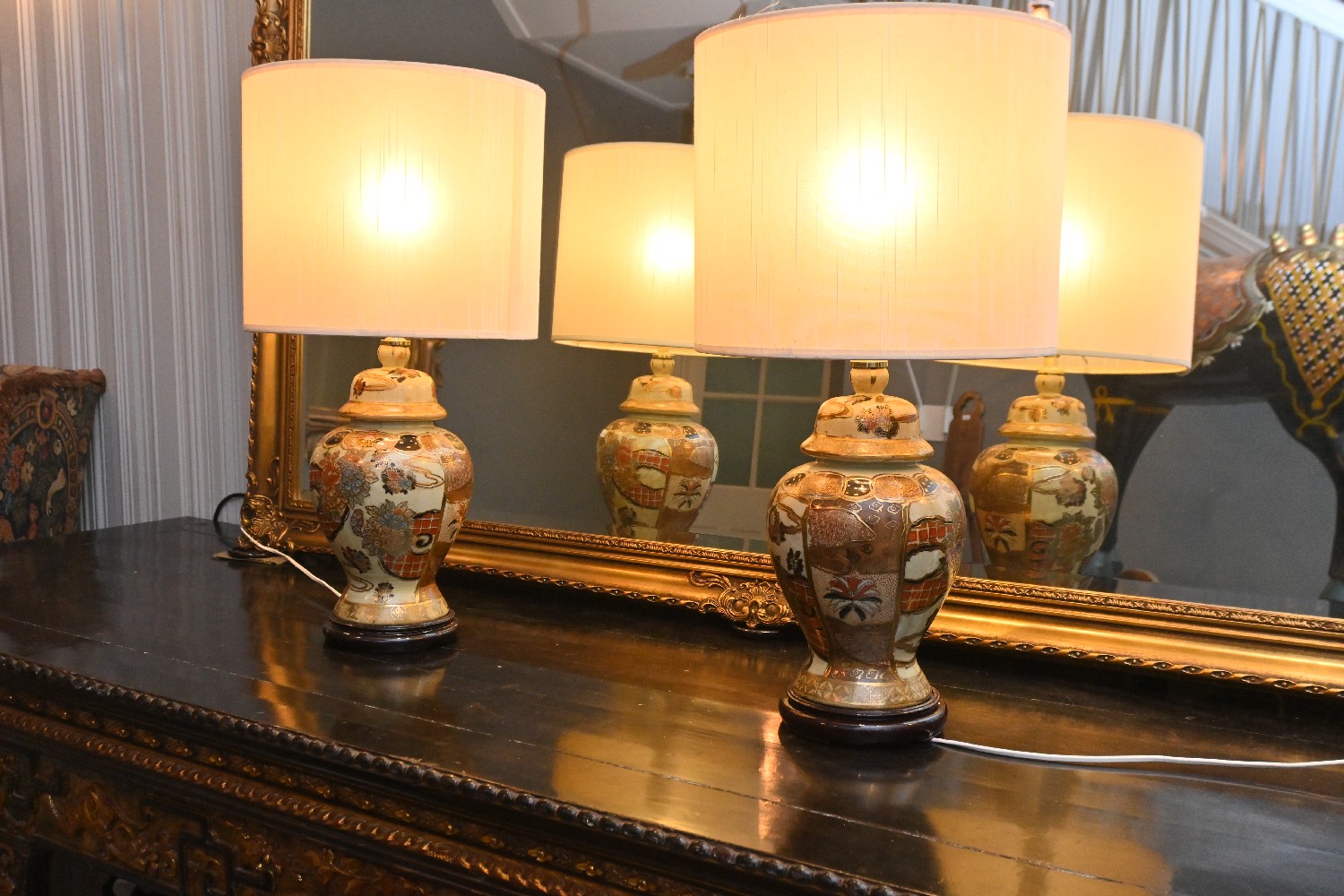 A PAIR OF TABLE LAMPS FORMED OF SATSUMA BALUSTER-SHAPED COVERED VASES (64H X 32DIA CM) (LEONARD JOEL DELIVERY SIZE: LARGE)