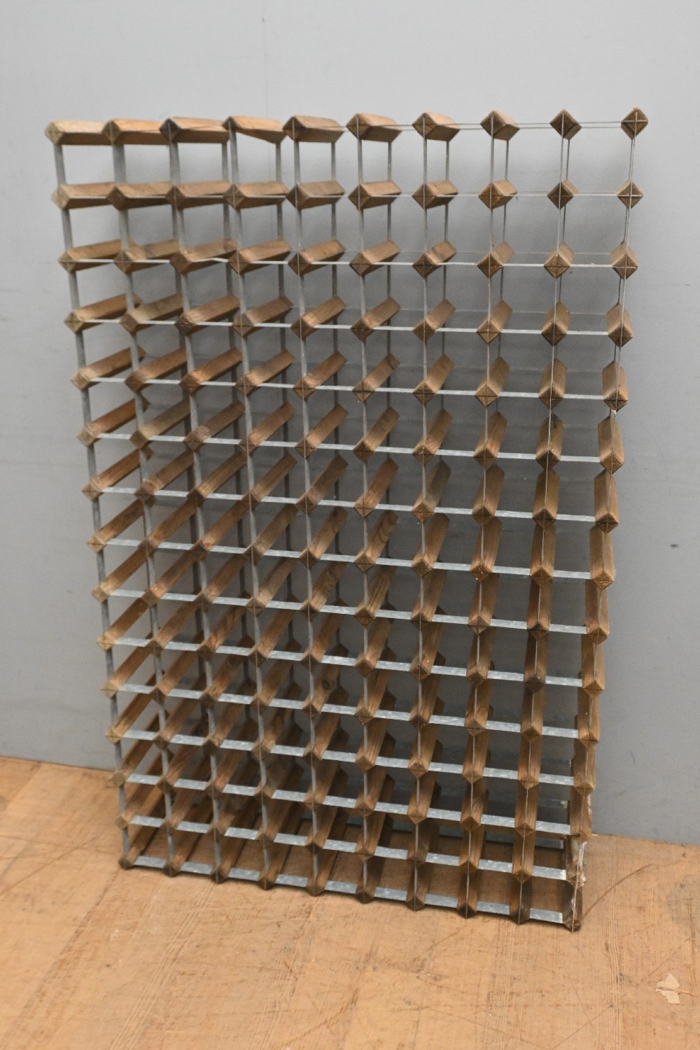 A RUSTIC WINE RACK (139CM H X 90CM W X 25CM D) (LEONARD JOEL DELIVERY SIZE: LARGE)