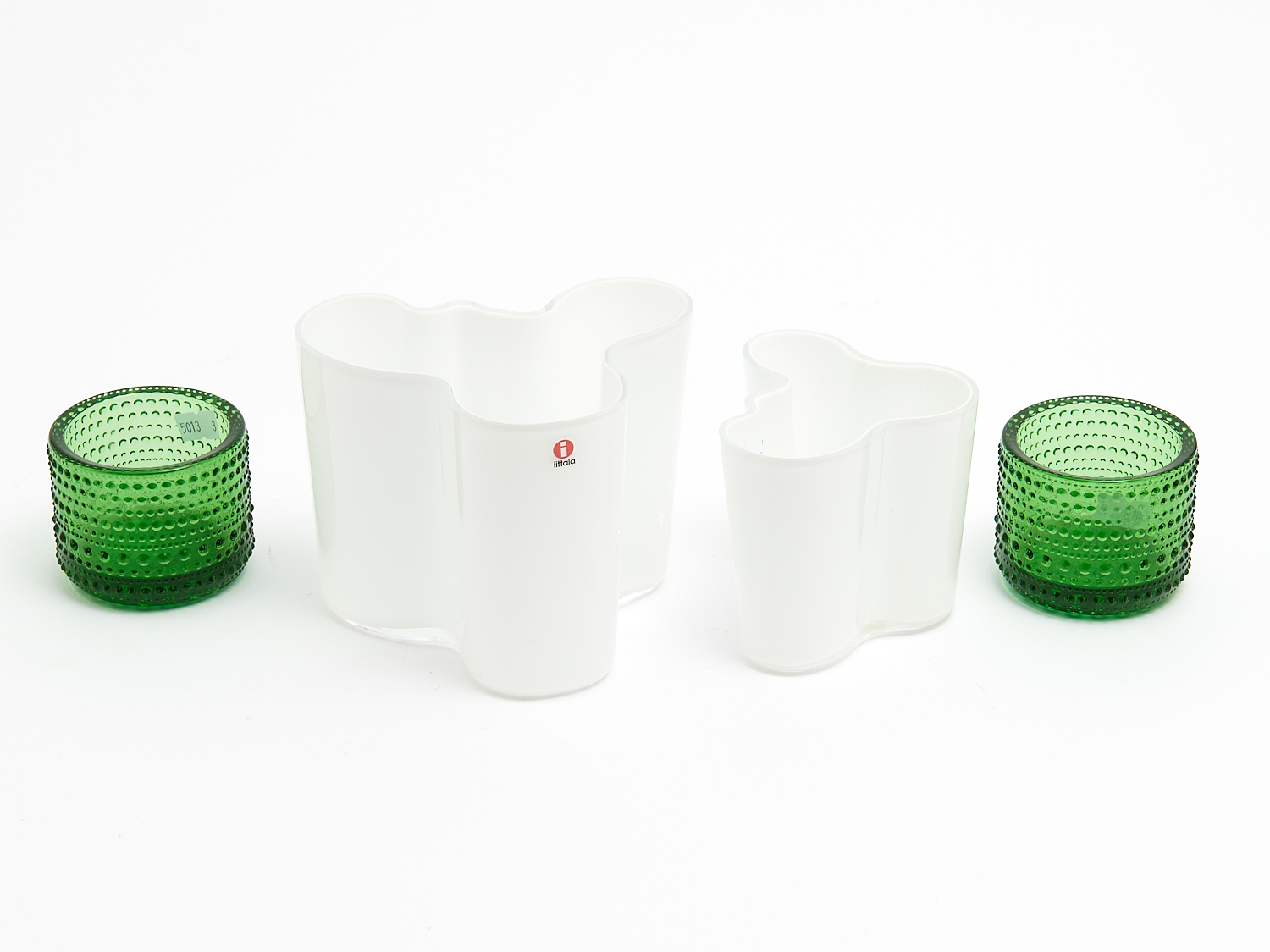 A PAIR OF ITAALIA CANDELHOLDERS AND A PAIR OF SIMILAR VASES H.12.5CM (TALLEST), LEONARD JOEL LOCAL DELIVERY: MEDIUM