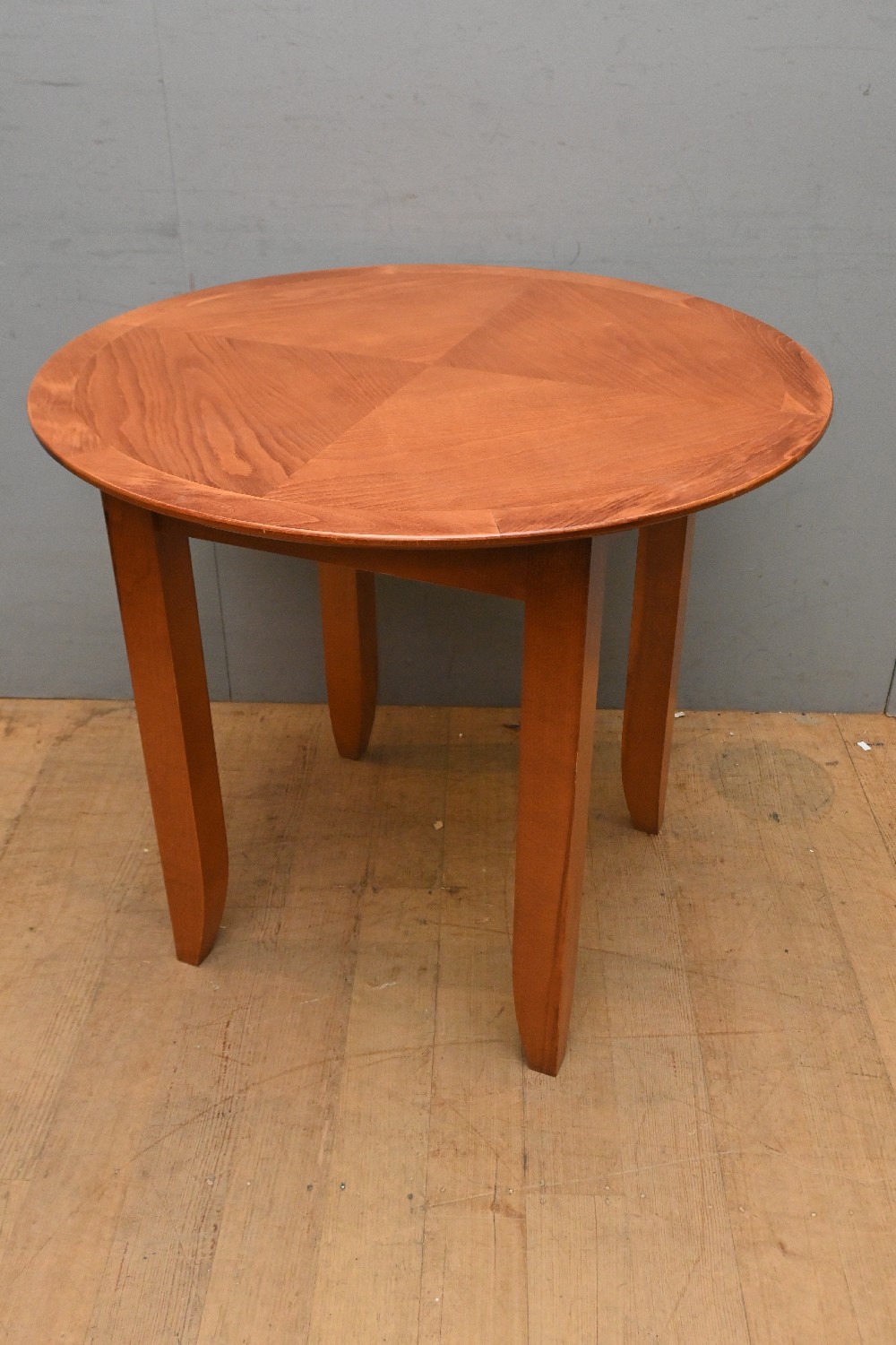 A MODERN OAK CIRCULAR SIDE TABLE (74CM H X 85CM DIA) (LEONARD JOEL DELIVERY SIZE: X- LARGE)