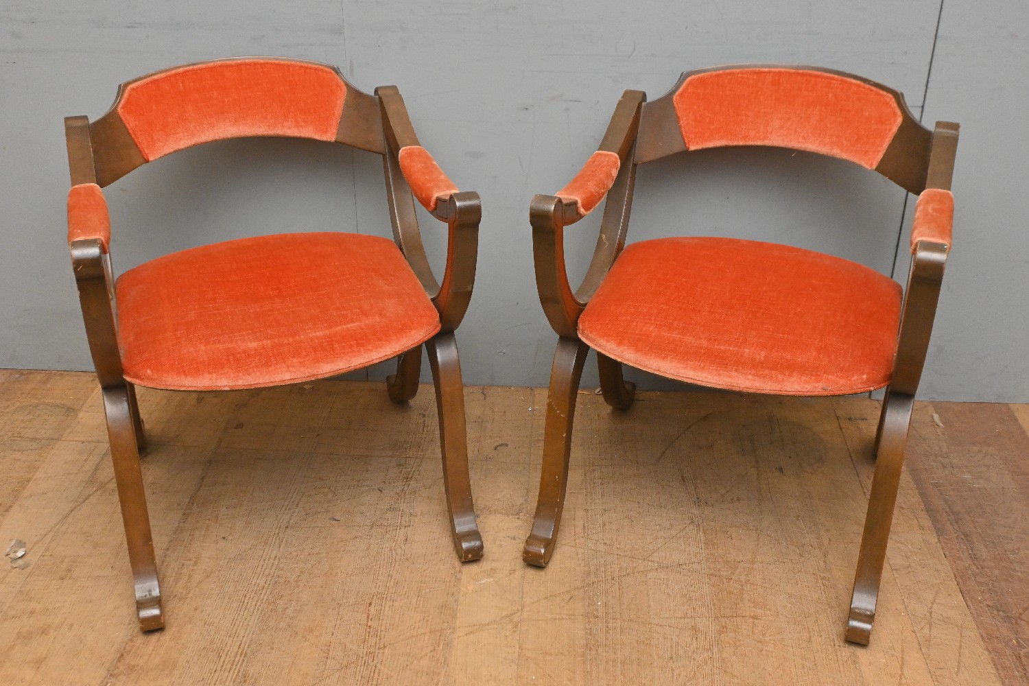 A PAIR OF CONTEMPORARY PINK UPHOLSTERED CHAIRS (75CM H X 59CM W X 59CM D) (A/F) (LEONARD JOEL DELIVERY SIZE: LARGE)