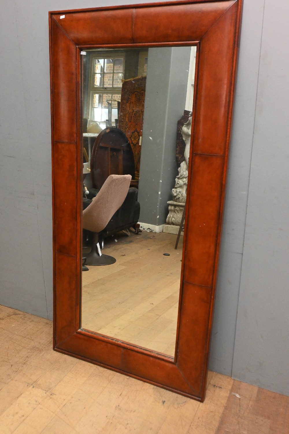 A LEATHER FRAMED MIRROR (163CM H X 182CM W) (LEONARD JOEL DELIVERY SIZE: LARGE)
