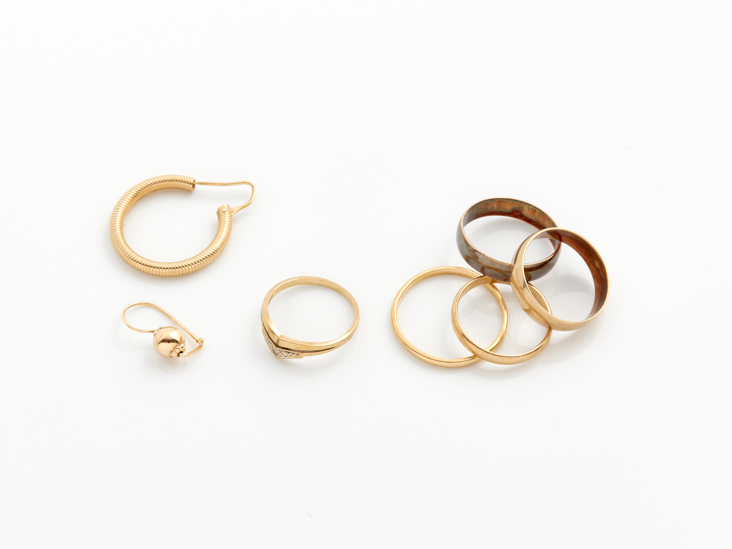 A COLLECTION RINGS AND FINDINGS IN 9CT GOLD, 13.3GMS