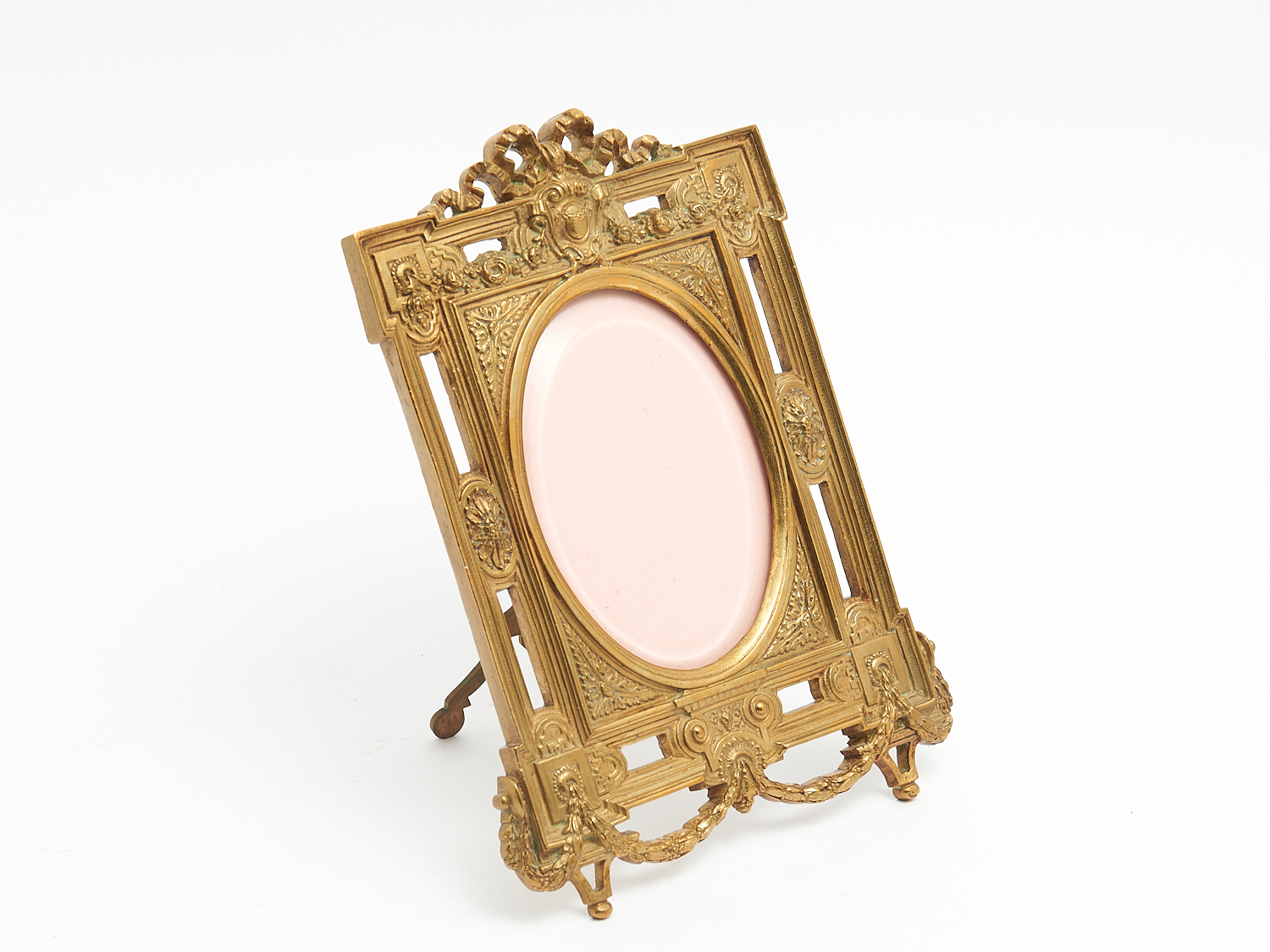 A FRENCH GILT METAL PICTURE FRAME WITH OVAL BEVELLED GLASS PICTURE PRESENTATION 25.5 X 16CM, LEONARD JOEL LOCAL DELIVERY: SMALL