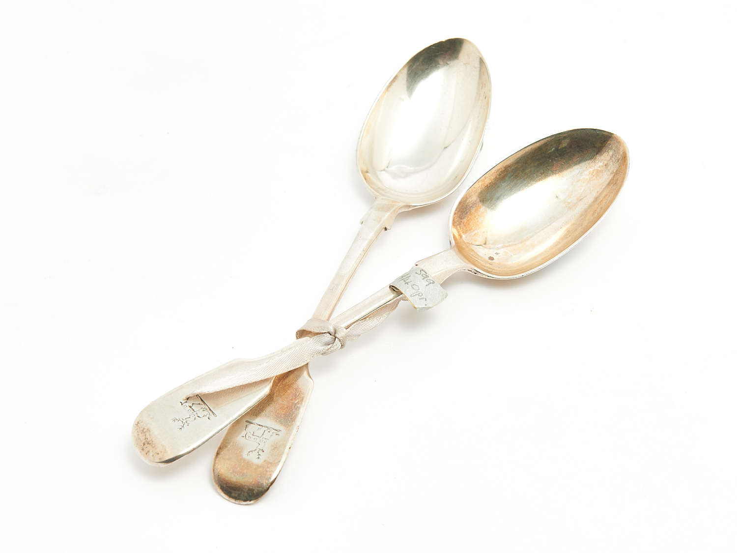 A PAIR OF STERLING SILVER SPOONS L.18CM, 90G, LEONARD JOEL LOCAL DELIVERY: SMALL