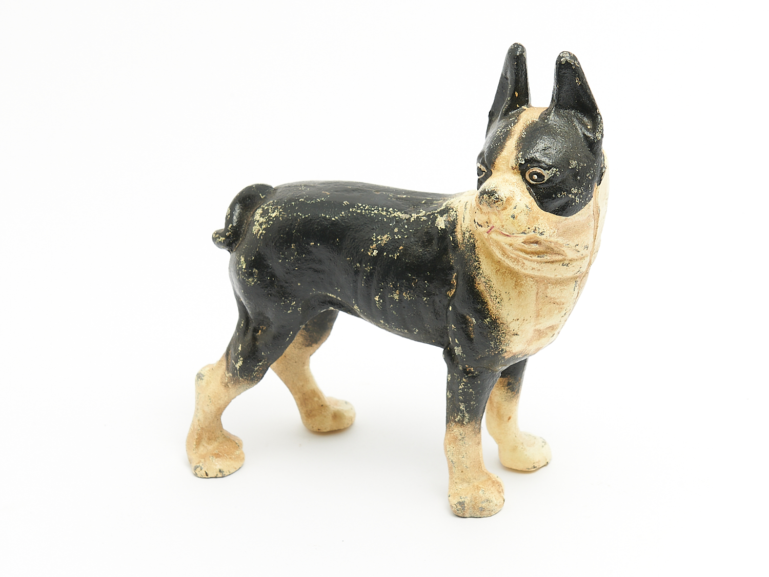 A PAINTED CAST-IRON FRENCH BULLDOG FIGURE H.20.5CM, LEONARD JOEL DELIVERY SIZE: SMALL