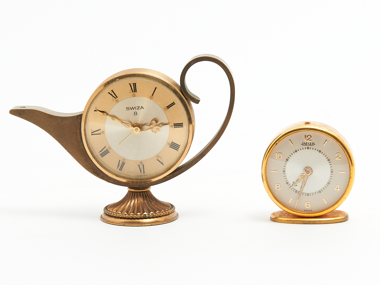 A JAEGER TRAVEL CLOCK AND A SWIZA TRAVEL CLOCK H.5CM (JAEGER), LEONARD JOEL LOCAL DELIVERY: SMALL