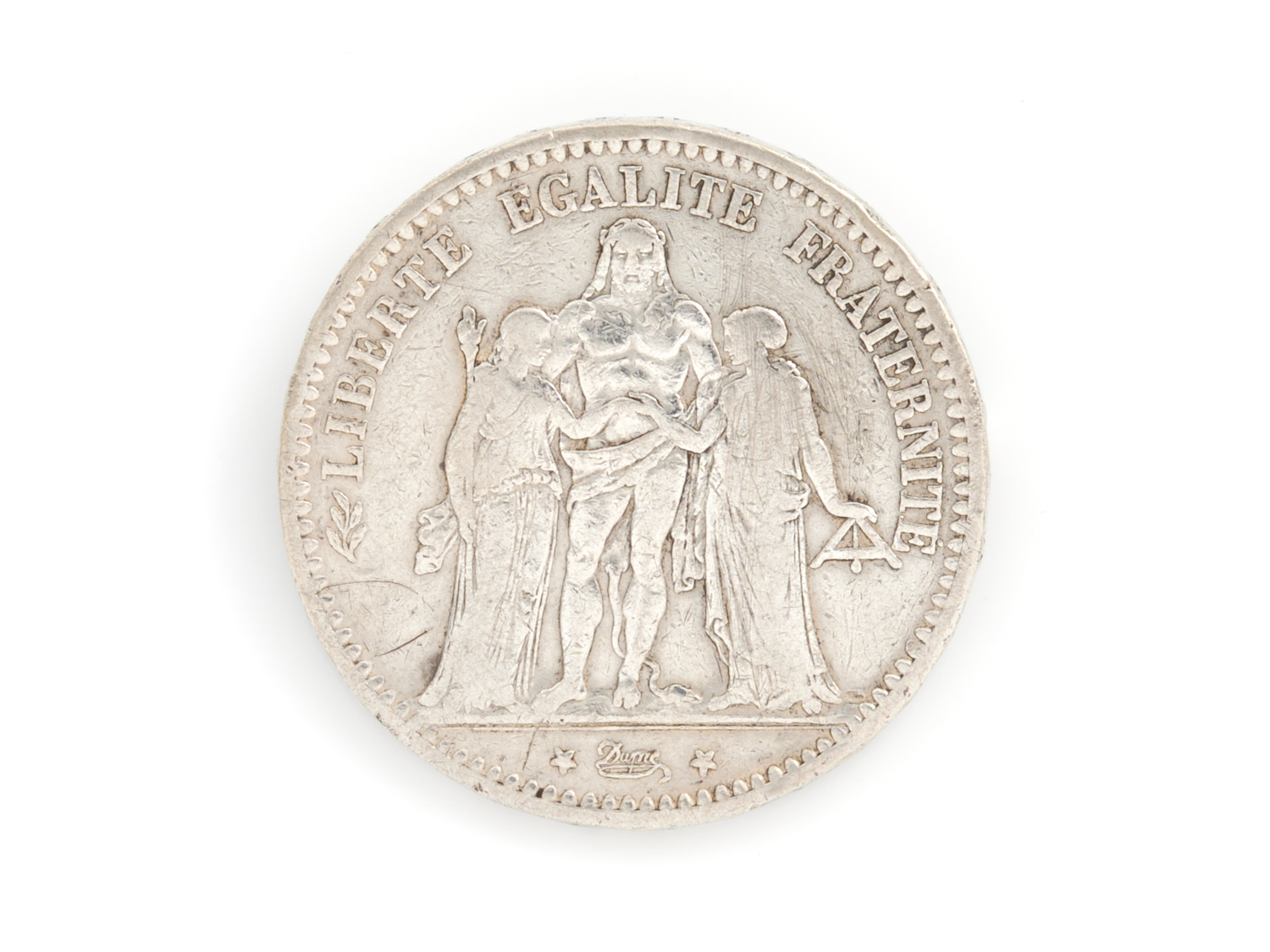 AN ANTIQUE FRENCH SILVER MARRIAGE MEDALLION BROOCH, DIAMETER 35MM