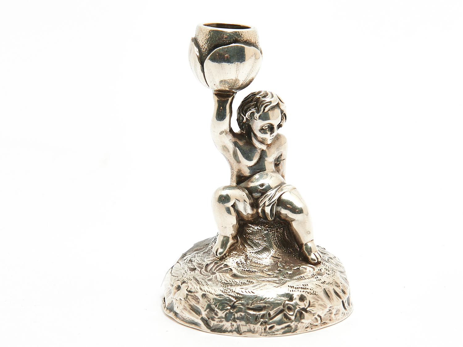 A VICTORIAN STERLING SILVER PUTTI-FORM CANDLE STICK H.8CM 80G, LEONARD JOEL DELIVERY SIZE: SMALL