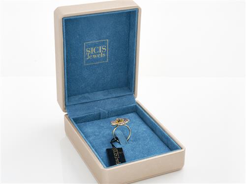 SICIS, A SAPPHIRE AND MOSAIC FLOWER RING IN 18CT GOLD, SIZE M, ACCOMPANIED BY A SICIS BOX