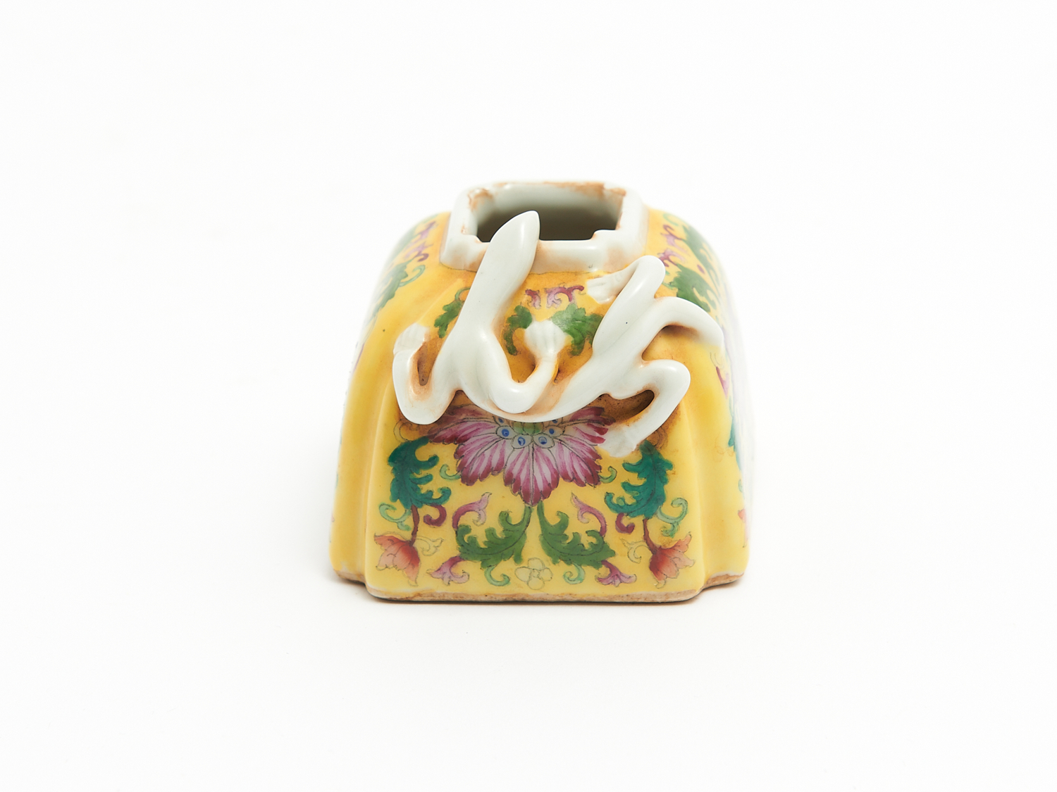 AN ANTIQUE CHINESE WATER POT ON A YELLOW GROUND H.5.5CM, LEONARD JOEL LOCAL DELIVERY: SMALL