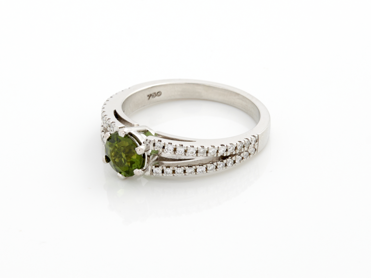 A TOURMALINE AND DIAMOND RING IN 18CT WHITE GOLD, SIZE 0, 5.9GMS