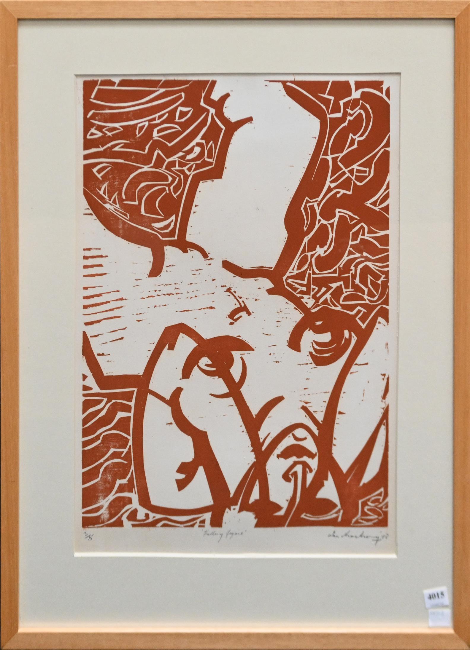 IAN ARMSTRONG, FALLING FIGURE 1978, LINOCUT ED. 3/15, SIGNED, DATED, TITLED, EDITION BELOW IMAGE, 45.5 X 33CM, FRAME SIZE: 66 X 51