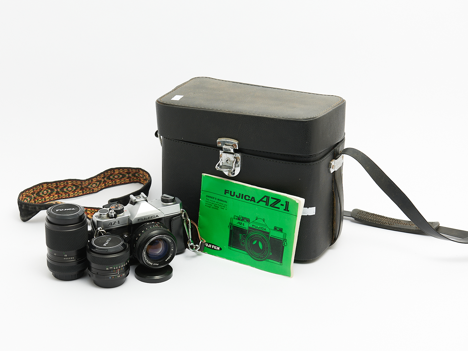 A FUJICA AZ-1 SLR CAMERA WITH CARRY CASE, VARIOUS LENSES AND FILTERS H.22CM (CARRY CASE), LEONARD JOEL LOCAL DELIVERY: SMALL