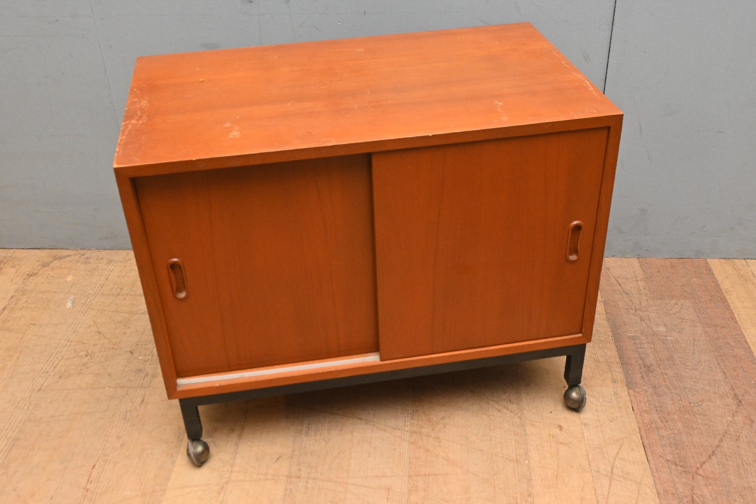 A MID-CENTURY RECORD CABINET (A/F) (61CM H X 76CM W X 45CM D) (LEONARD JOEL DELIVERY SIZE: LARGE)