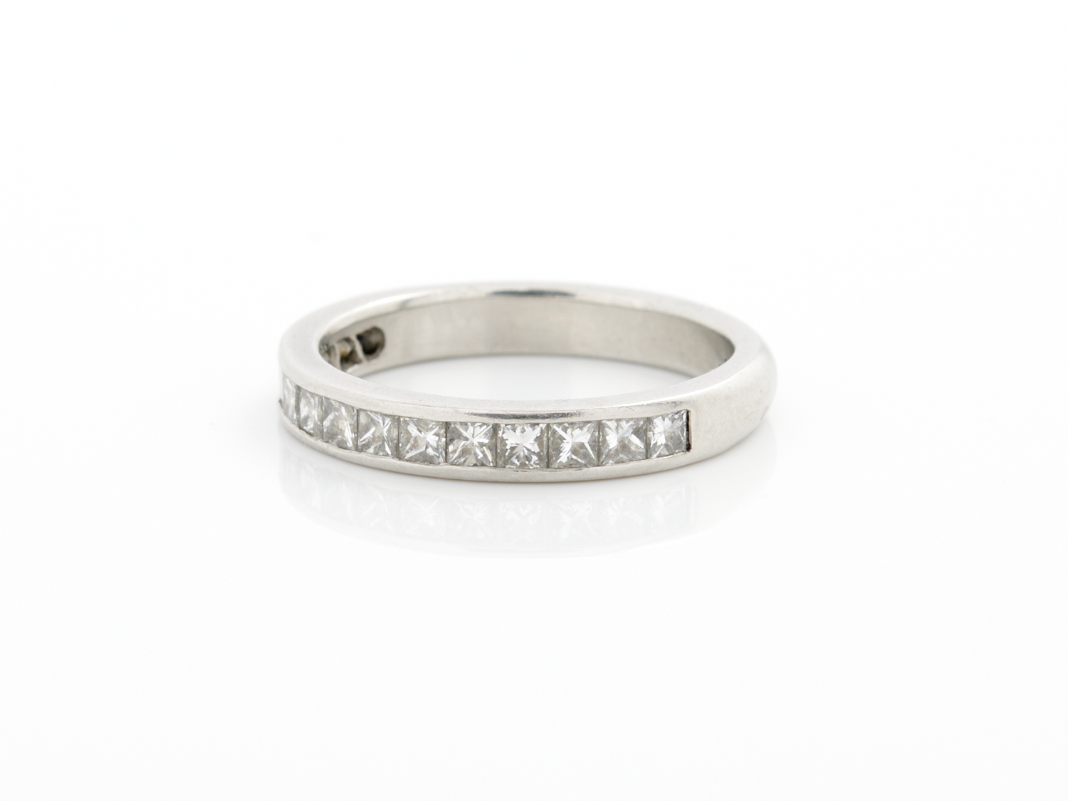 A PRINCESS-CUT DIAMOND HALF HOOP BAND IN PLATINUM, SIZE J, 4.2GMS