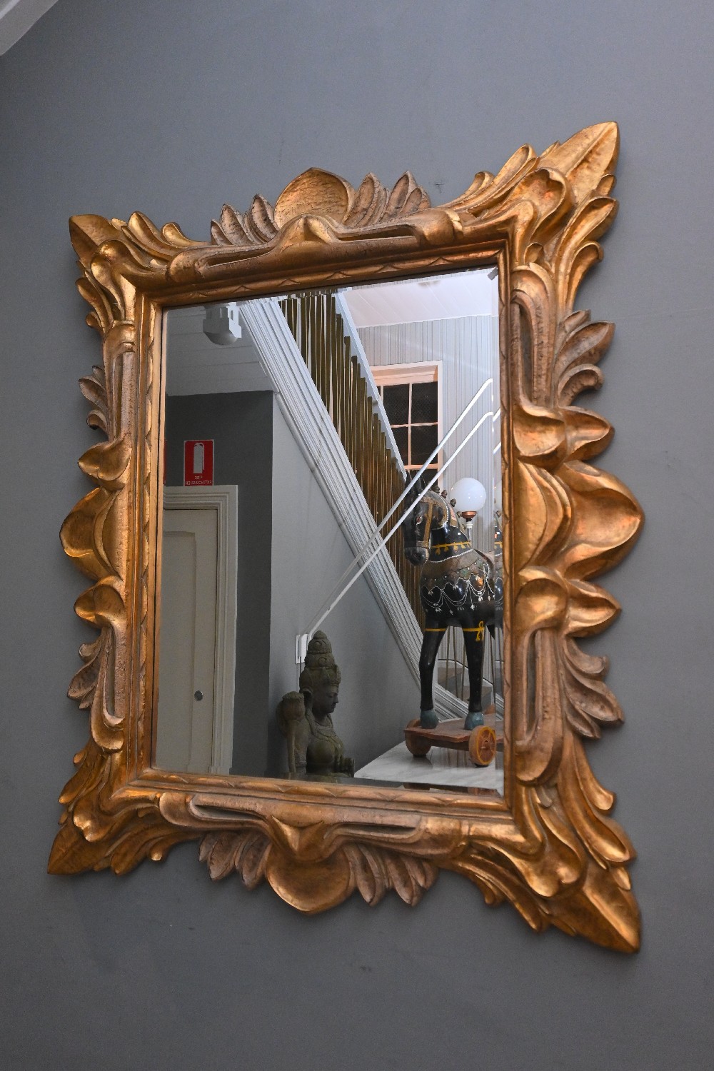A LARGE WALL MIRROR IN A SUBSTANTIAL CARVED AND GILT FRAME (144H X 116W CM) (PLEASE NOTE THIS HEAVY ITEM MUST BE REMOVED BY CARRIERS AT THE CUSTOMER'S EXPENSE. LEONARD JOEL STAFF CANNOT ASSIST CARRYING THIS ITEM) (X-LARGE ITEM)