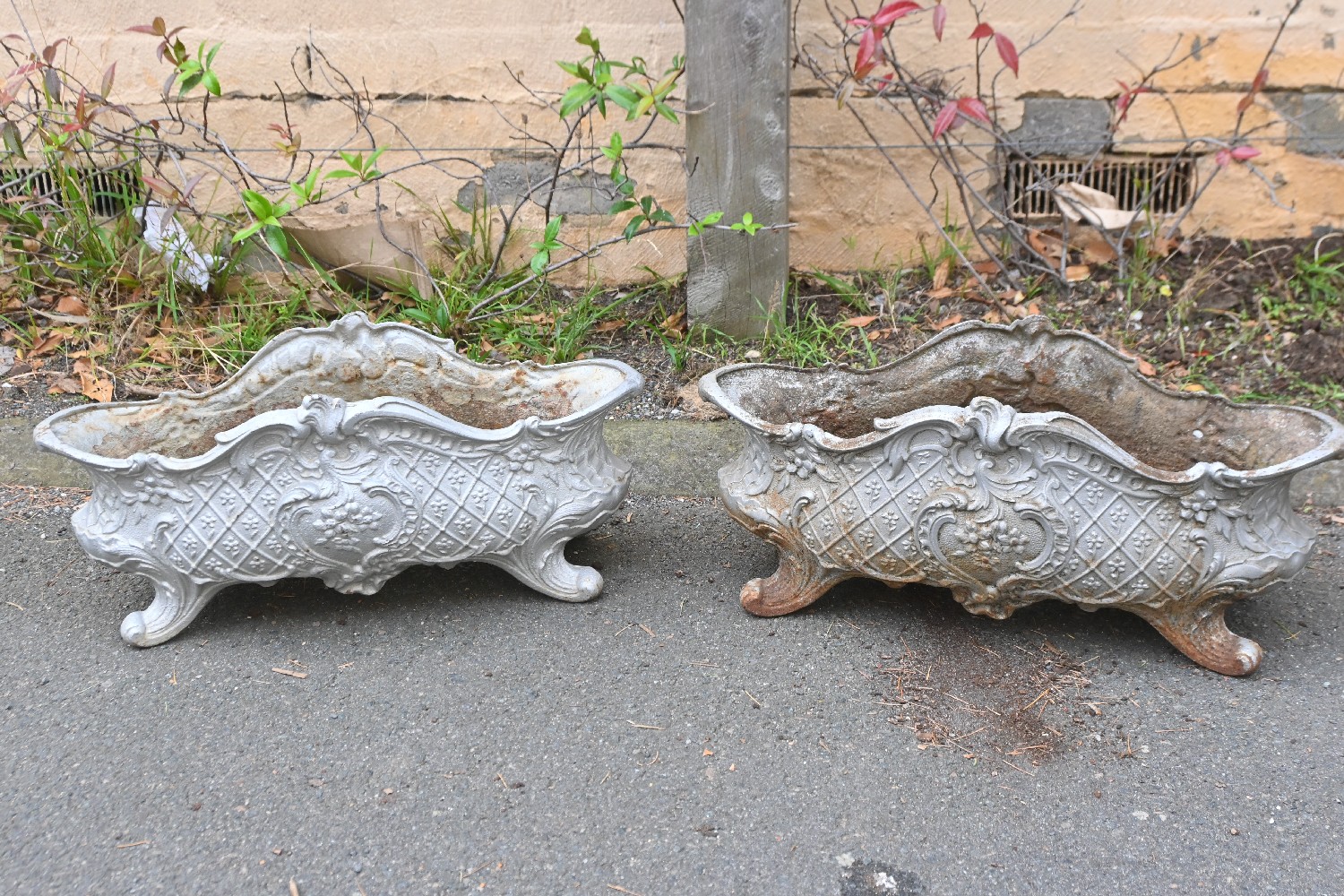 A PAIR OF FRENCH CAST-IRON PLANTER POTS (29CM H X 61CM W X 26CM D) (LEONARD JOEL DELIVERY SIZE: X- LARGE)