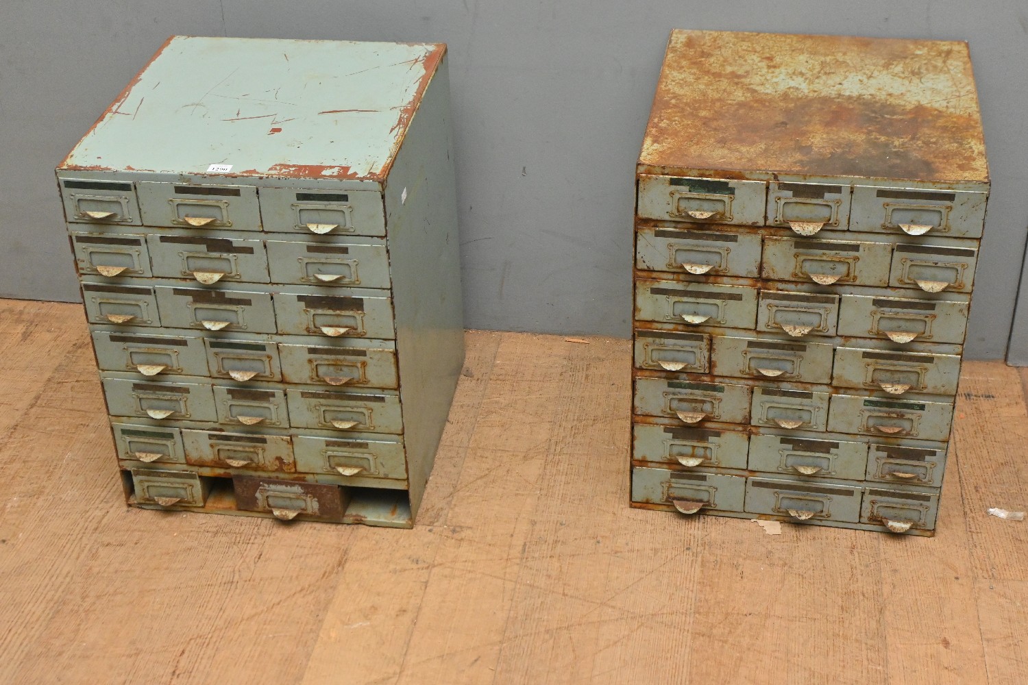 TWO SIMILAR STEEL WORKSHOP CABINETS OF SMALL DRAWERS (50CM H X 37CM X 39CM D) (LEONARD JOEL DELIVERY SIZE: LARGE)