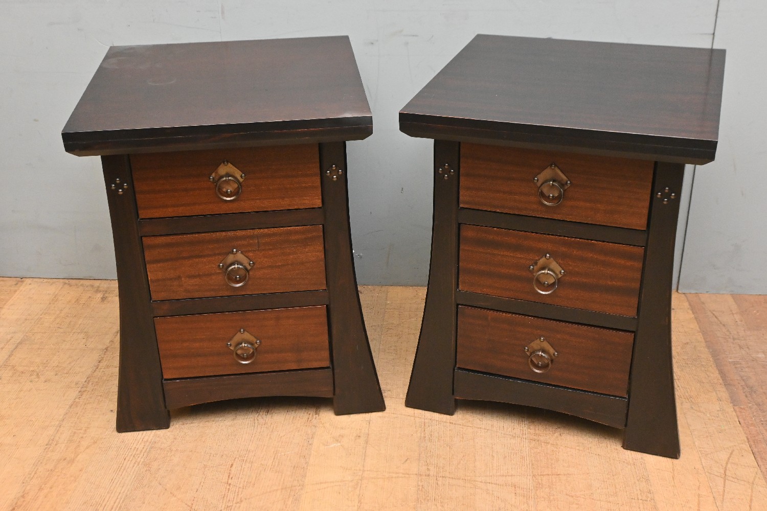 A PAIR OF HARDWOOD BEDSIDE PEDESTAL CHESTS (A/F) (87H X 52W X 54D CM) (LEONARD JOEL DELIVERY SIZE: X- LARGE)