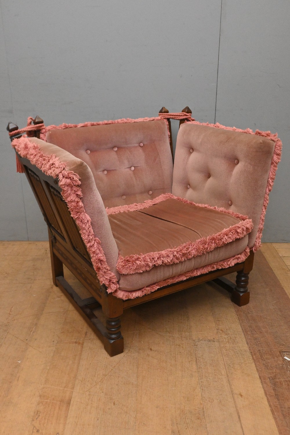 A GOOD QUALITY KNOLE ARMCHAIR, WITH CARVED SIDES (83H X 93W X 74D CM) (LEONARD JOEL DELIVERY SIZE: LARGE)