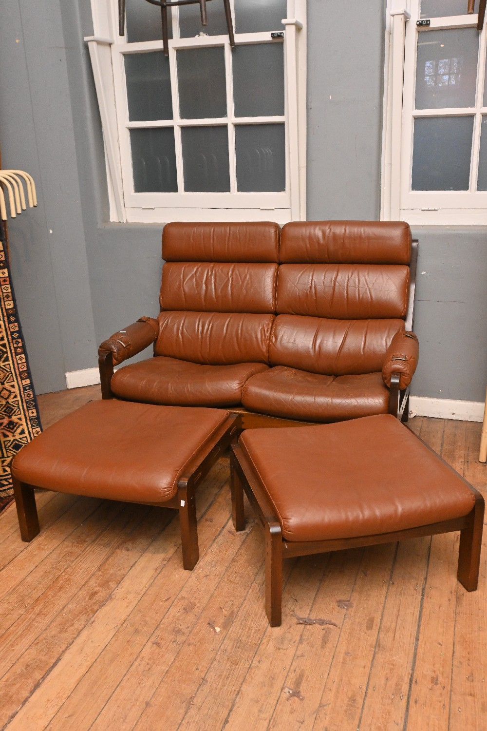 A MODULE MAVERICK TWO SEATER LEATHER SOFA WITH A PAIR OF MATCHED FOOT STOOLS BY GERALD EASDEN (110CM H X 132CM W X 82CM D) (LEONARD JOEL DELIVERY SIZE: X- LARGE)