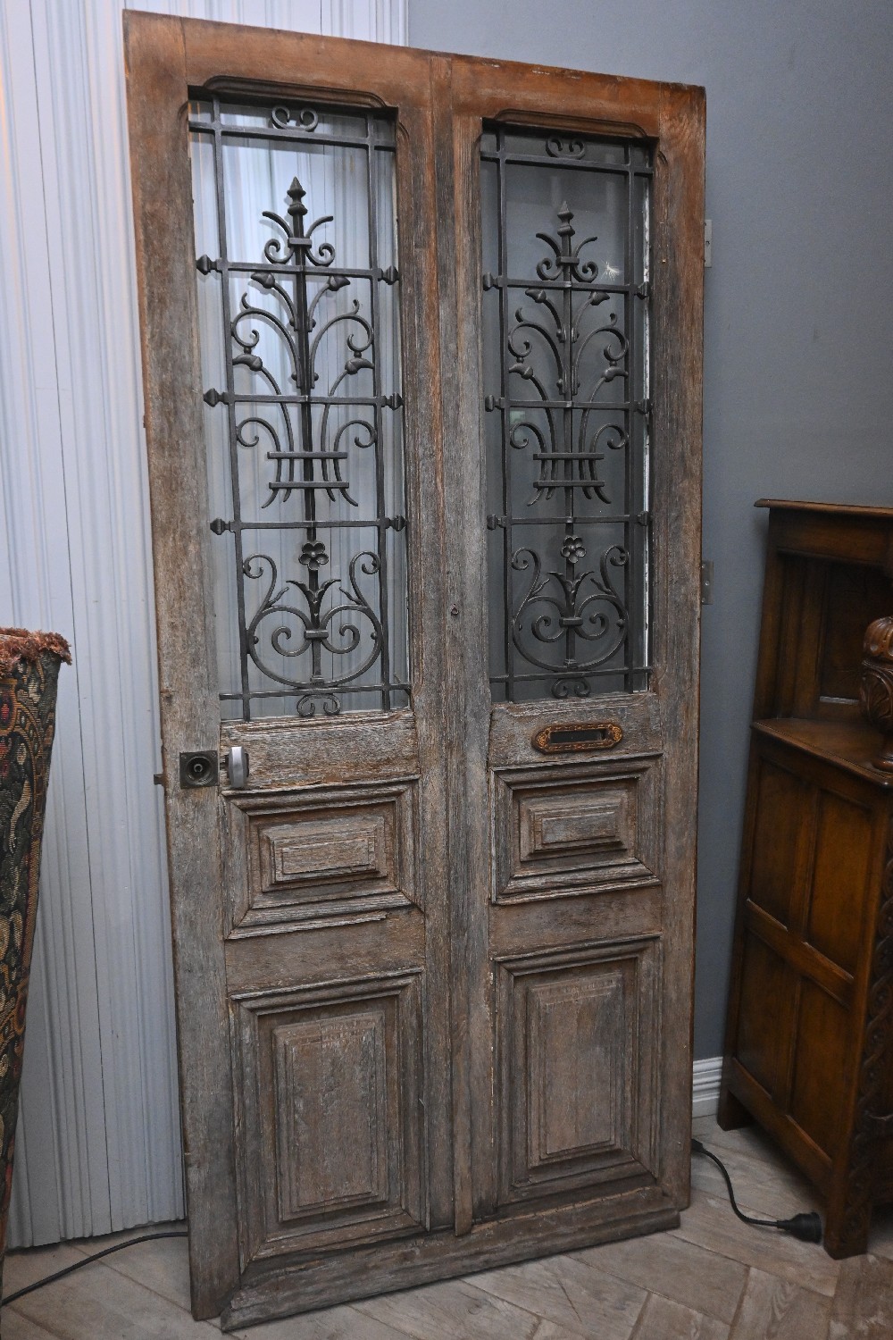A 19TH CENTURY FRENCH OAK AND WROUGHT IRON ENTRANCE DOOR (A/F) (214H X 99W CM X 10CM D) (PLEASE NOTE THIS HEAVY ITEM MUST BE REMOVED BY CARRIERS AT THE CUSTOMER'S EXPENSE. LEONARD JOEL STAFF CANNOT ASSIST CARRYING THIS ITEM) (X-LARGE ITEM)