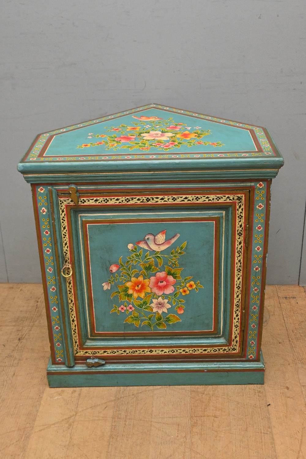 A HAND PAINTED CORNER CABINET (70CM H x 66CM W x 58CM D) (LEONARD JOEL DELIVERY SIZE: LARGE)