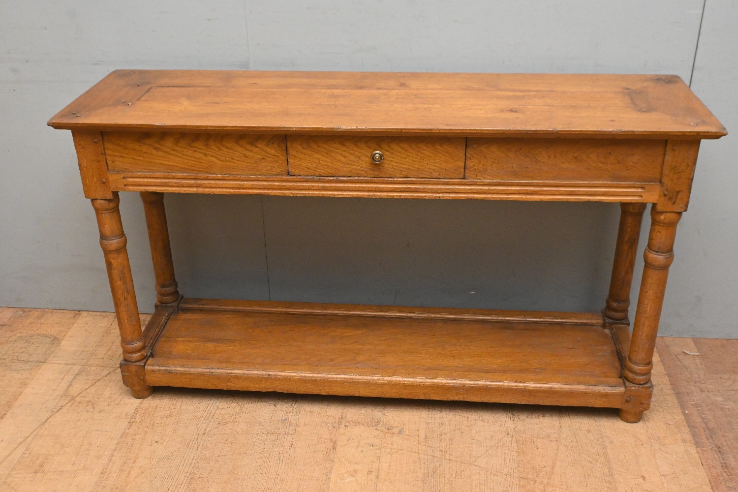 A PROVINCIAL 18th CENTURY-STYLE OAK SIDE TABLE, WITH POT BOARD (78CM H X 140CM W X 40CM D) (LEONARD JOEL DELIVERY SIZE: X- LARGE)