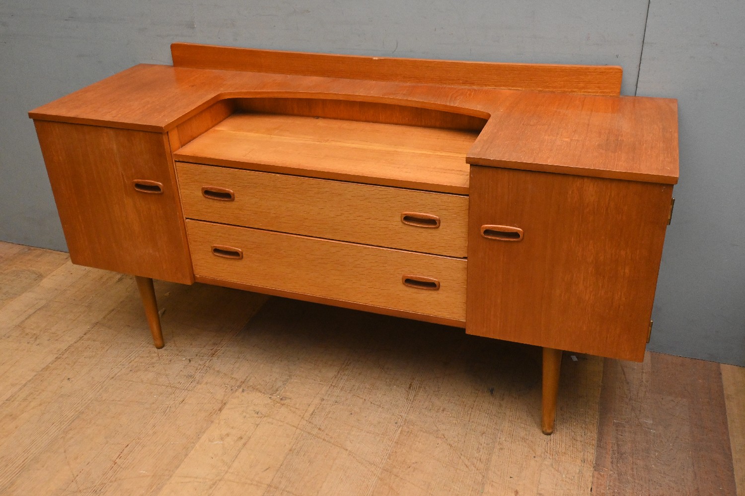 A 1960s BRITISH SIDEBOARD (A/F) (67CM H X 138CM W X 44CM D)(LEONARD JOEL DELIVERY SIZE: X- LARGE)