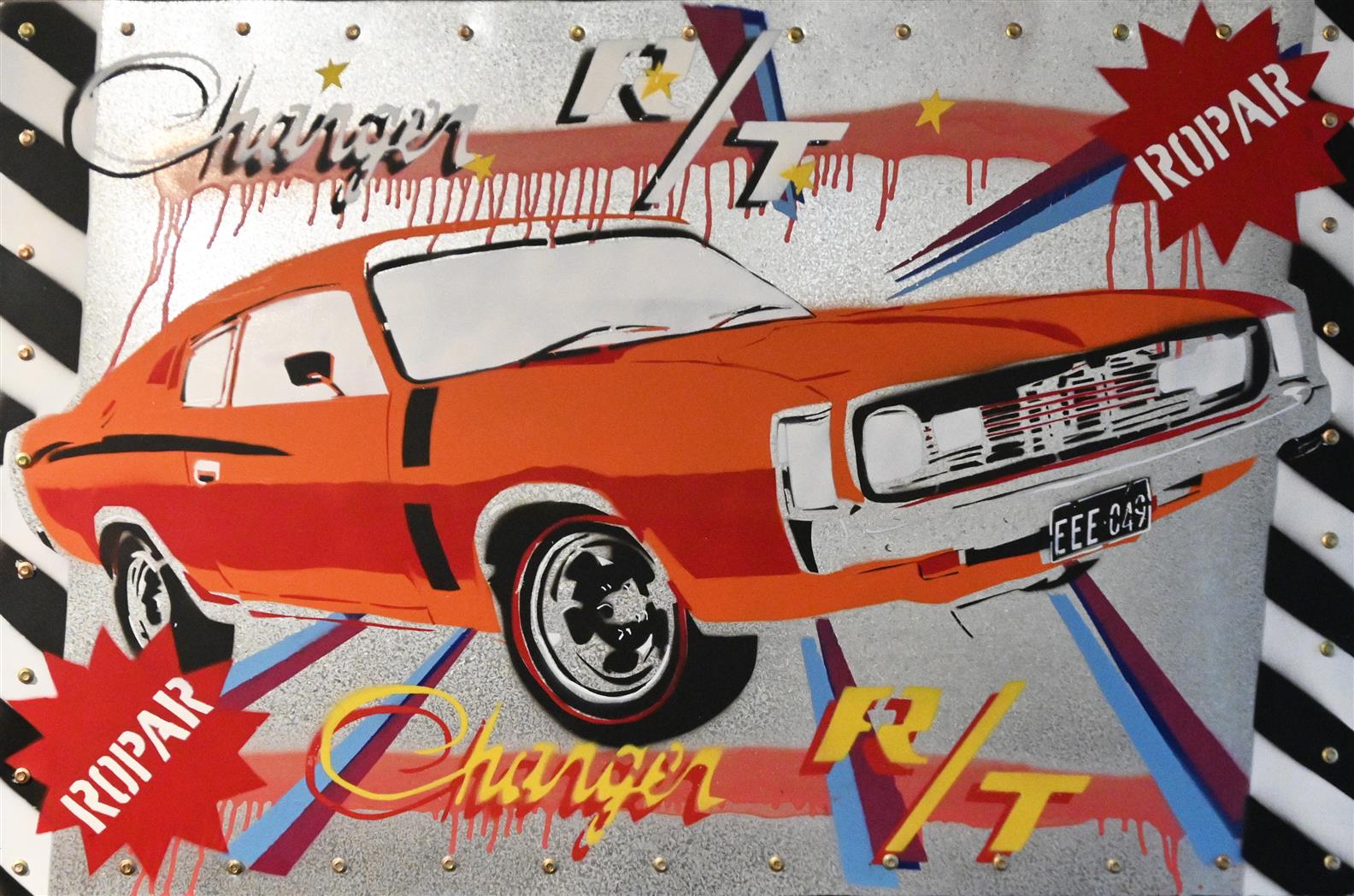 § DENNIS ROPAR, CHARGER, STENCIL ON ALUMINIUM, SIGNED WITH STENCIL IN UPPER RIGHT AND LOWER LEFT CORNERS, 81 X 122CM