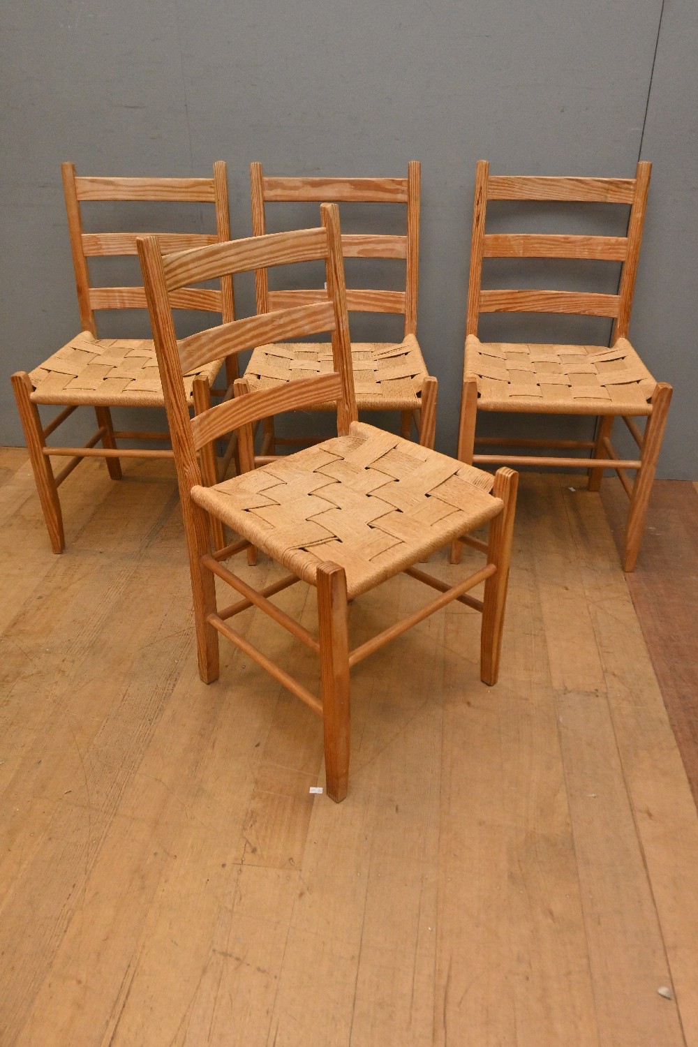 A SET OF FOUR OREGON PINE DANISH CORD CHAIRS (A/F) (86H X 44W X 48D CM) (LEONARD JOEL DELIVERY SIZE: LARGE)