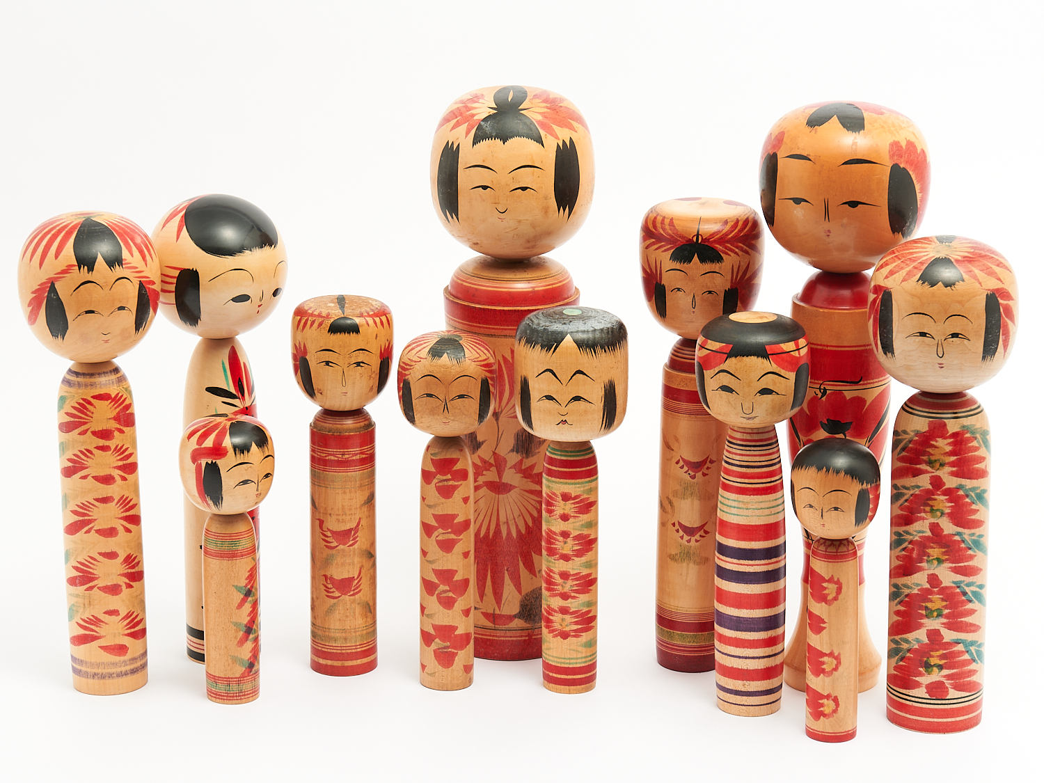TWELVE MEDIUM-SIZED HAND-PAINTED KOKESHI DOLLS H.37CM (TALLEST), LEONARD JOEL DELIVERY SIZE: SMALL