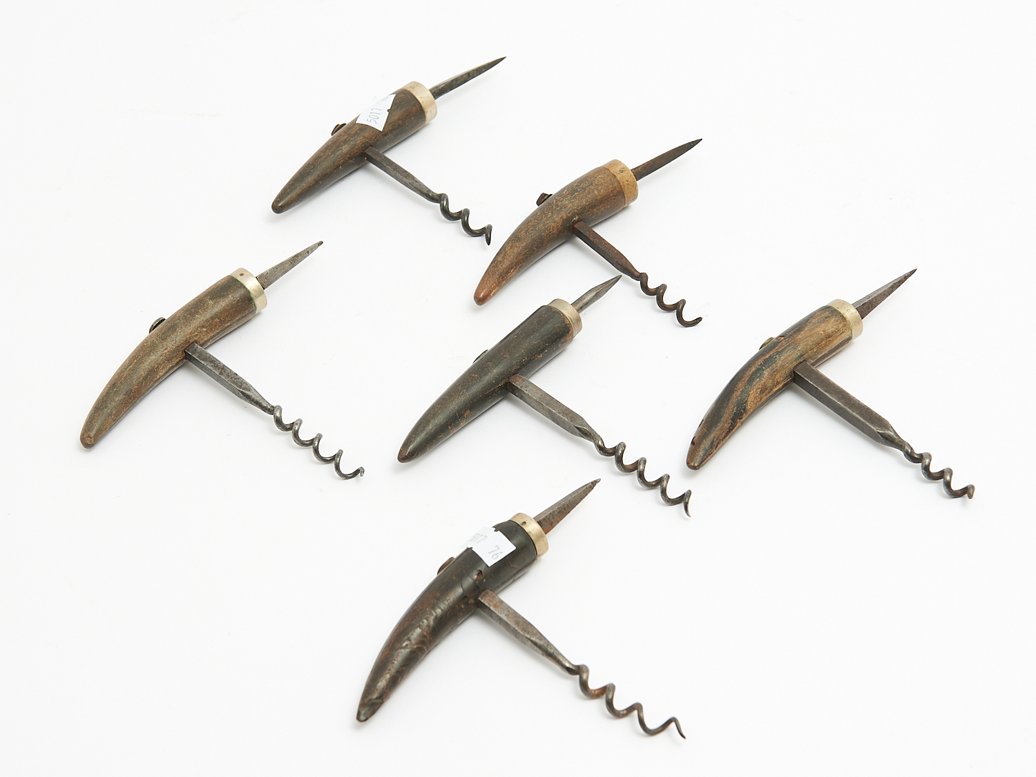 SIX ANTIQUE ENGLISH HORN HANDLED CORKSCREWS L.10CM (LONGEST), LEONARD JOEL DELIVERY SIZE: SMALL