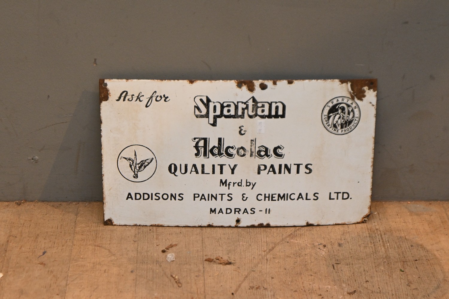 A SPARTAN QUALITY PAINTS ENAMEL ADVERTISING SIGN (26H X 46W CM) (LEONARD JOEL DELIVERY SIZE: MEDIUM)