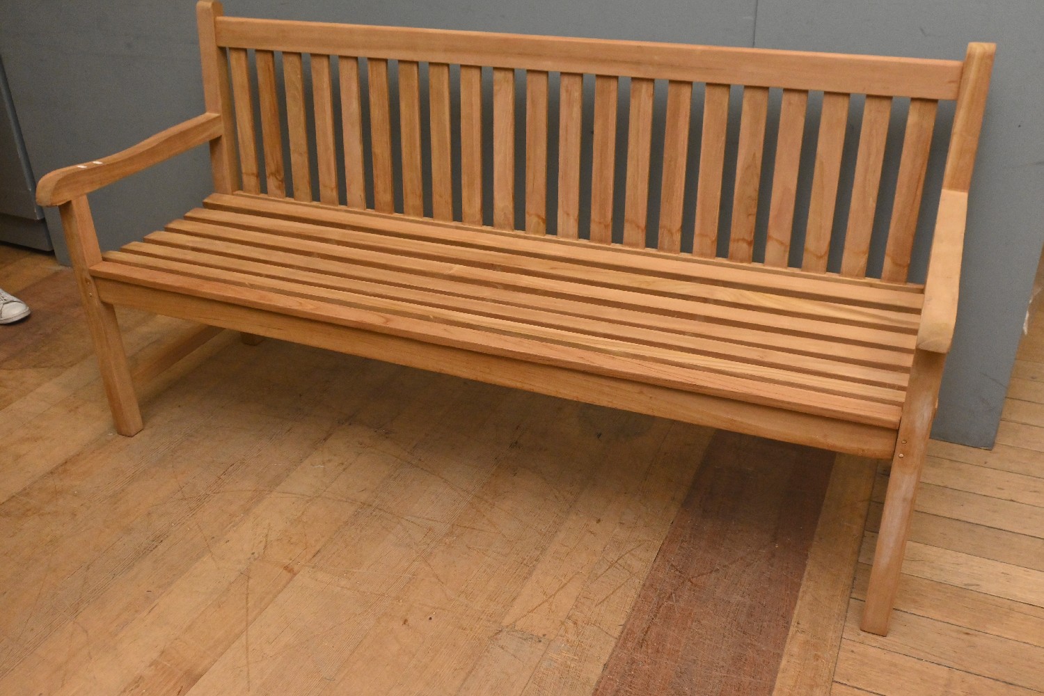 A NEW TEAK BENCH SEAT (92CM H X 180CM W X 64CM D) (LEONARD JOEL DELIVERY SIZE: X- LARGE)