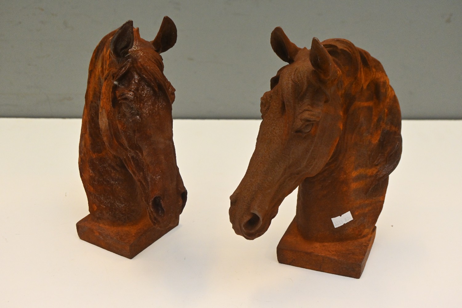 A PAIR OF CAST IRON HORSE BUSTS (28H CM) (LEONARD JOEL DELIVERY SIZE: MEDIUM)