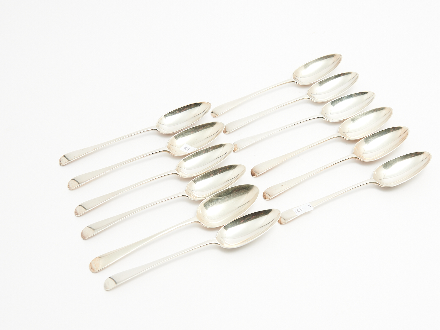 A SET OF TWELVE STERLING SILVER TABLE SPOONS, JOSIAH WILLIAMS AND CO (LONDON), 1899, 715.8G, LEONARD JOEL DELIVERY SIZE: SMALL