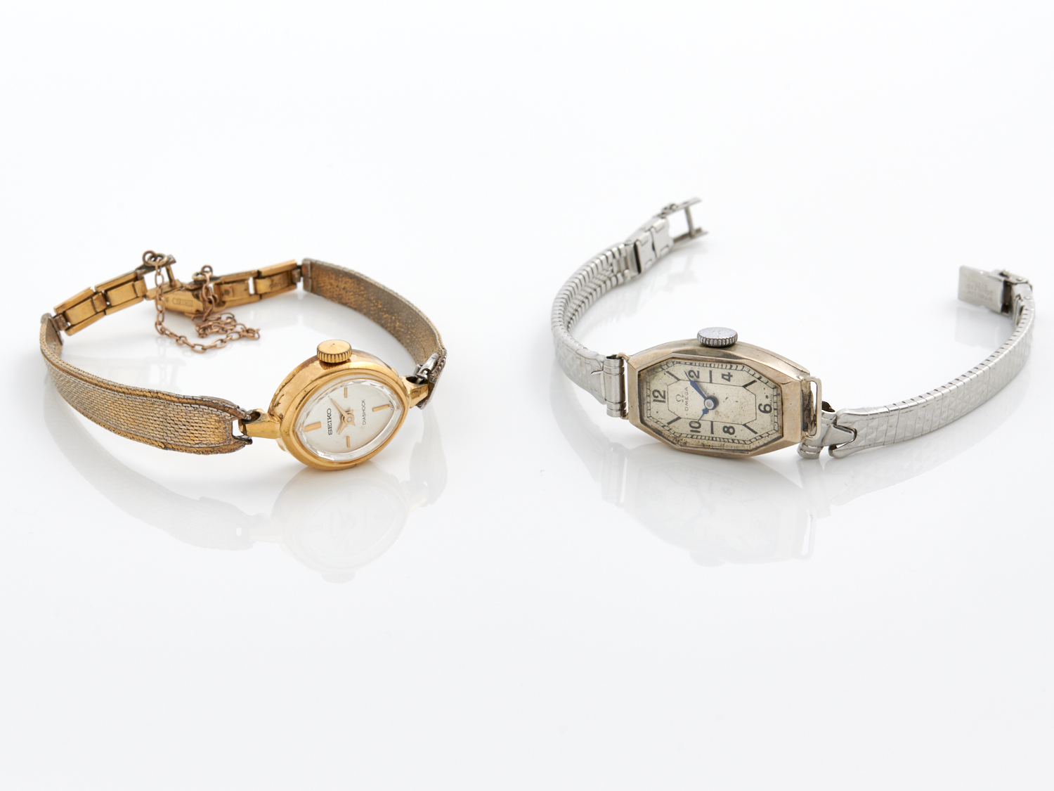 OMEGA, A LADY'S WRISTWATCH TOGETHER WITH A SEIKO NAVETTE-SHAPED WATCH, A/F