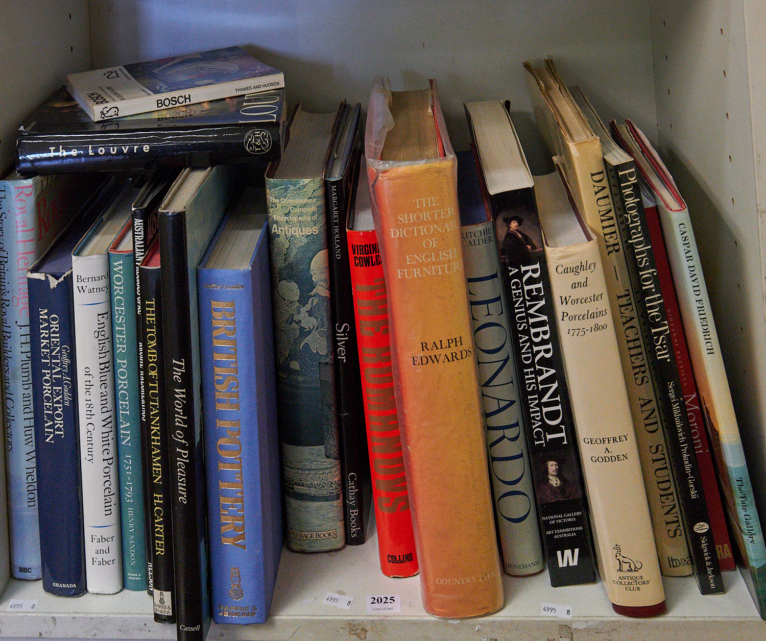 A SHELF OF REFERENCE BOOKS ON ART HISTORY AND ARTISTS INCLUDING ORIENTAL EXPORT MARKET PORCELAIN, BRITISH POTTERY, THE LOUVRE AND REMBRANDT, LEONARD JOEL LOCAL DELIVERY: LARGE