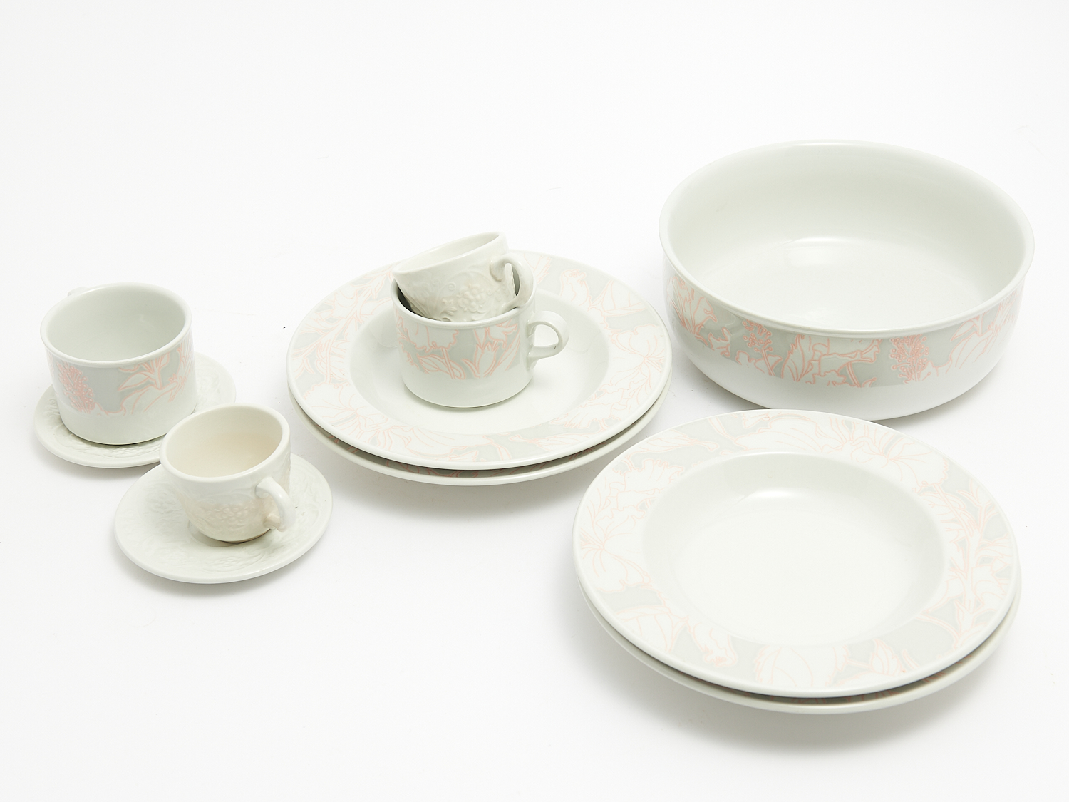A RICHARD GINORI LOT WITH LARGE FLORAL SALAD BOWL, SOUP BOWLS AND MUGS, WITH RENAISSANCE ESPRESSO CUPS AND PLATES (11 PIECES TOTAL), MADE IN ITALY DIA.23CM (SALAD BOWL), LEONARD JOEL DELIVERY SIZE: SMALL