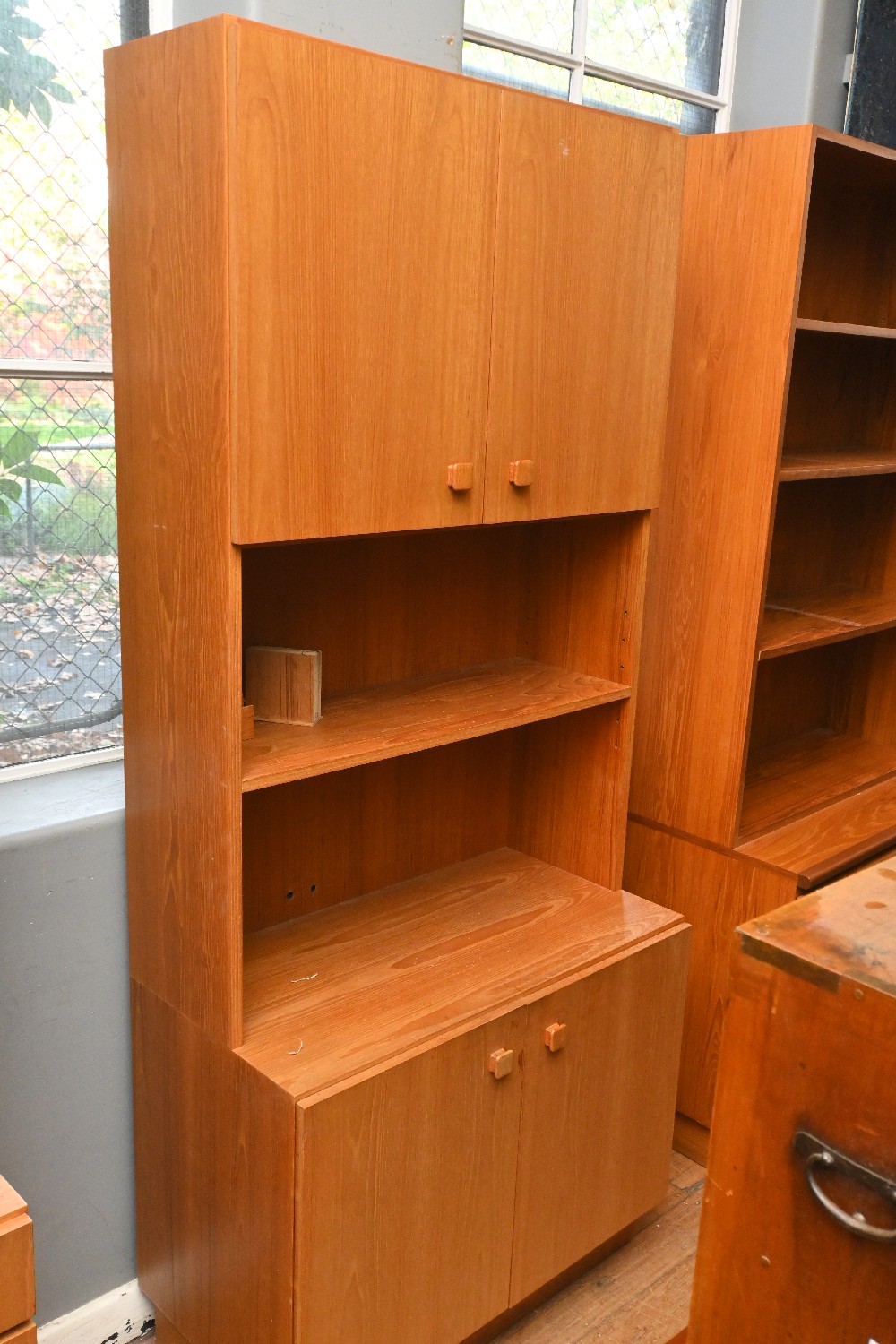 A LATE 1960s / 1970s HARDWOOD MODULAR BOOKCASE (A/F) (207CM H X 89CM W X 47CM D) (LEONARD JOEL DELIVERY SIZE: X- LARGE)