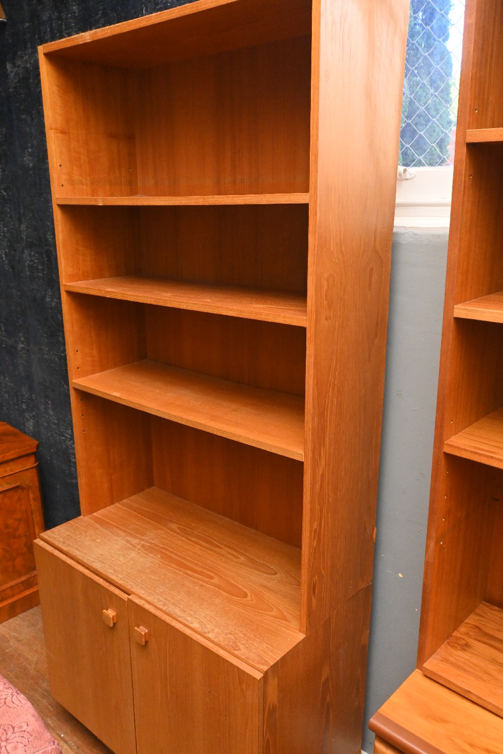A LATE 1960s / 1970s HARDWOOD MODULAR BOOKCASE (A/F) (209CM H X 89CM W X 46CM D) (LEONARD JOEL DELIVERY SIZE: X- LARGE)