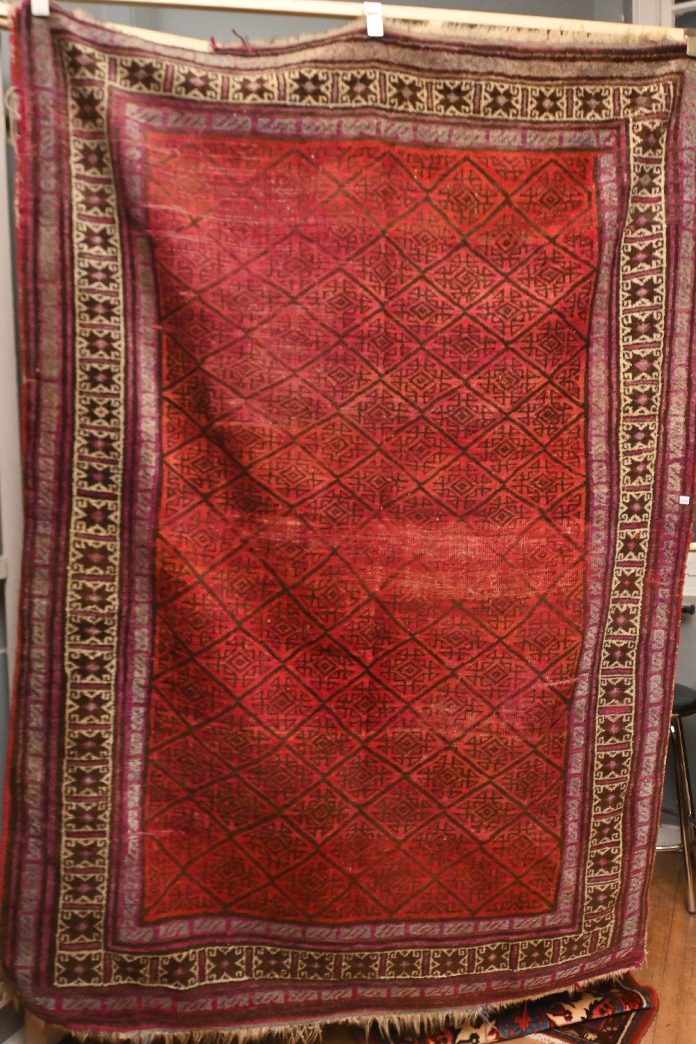 A TURKMEN RUG (A/F-AREAS OF UNEVEN WEAR) (230CM X 164CM) (LEONARD JOEL DELIVERY SIZE: LARGE)