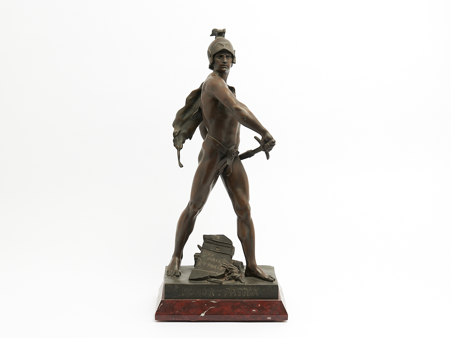 AFTER EMILE LOUIS PICAULT "HONOR PATRIA" SPELTER STATUE ON ROUGE MARBLE BASE H.60CM, LEONARD JOELLOCAL DELIVERY: MEDIUM