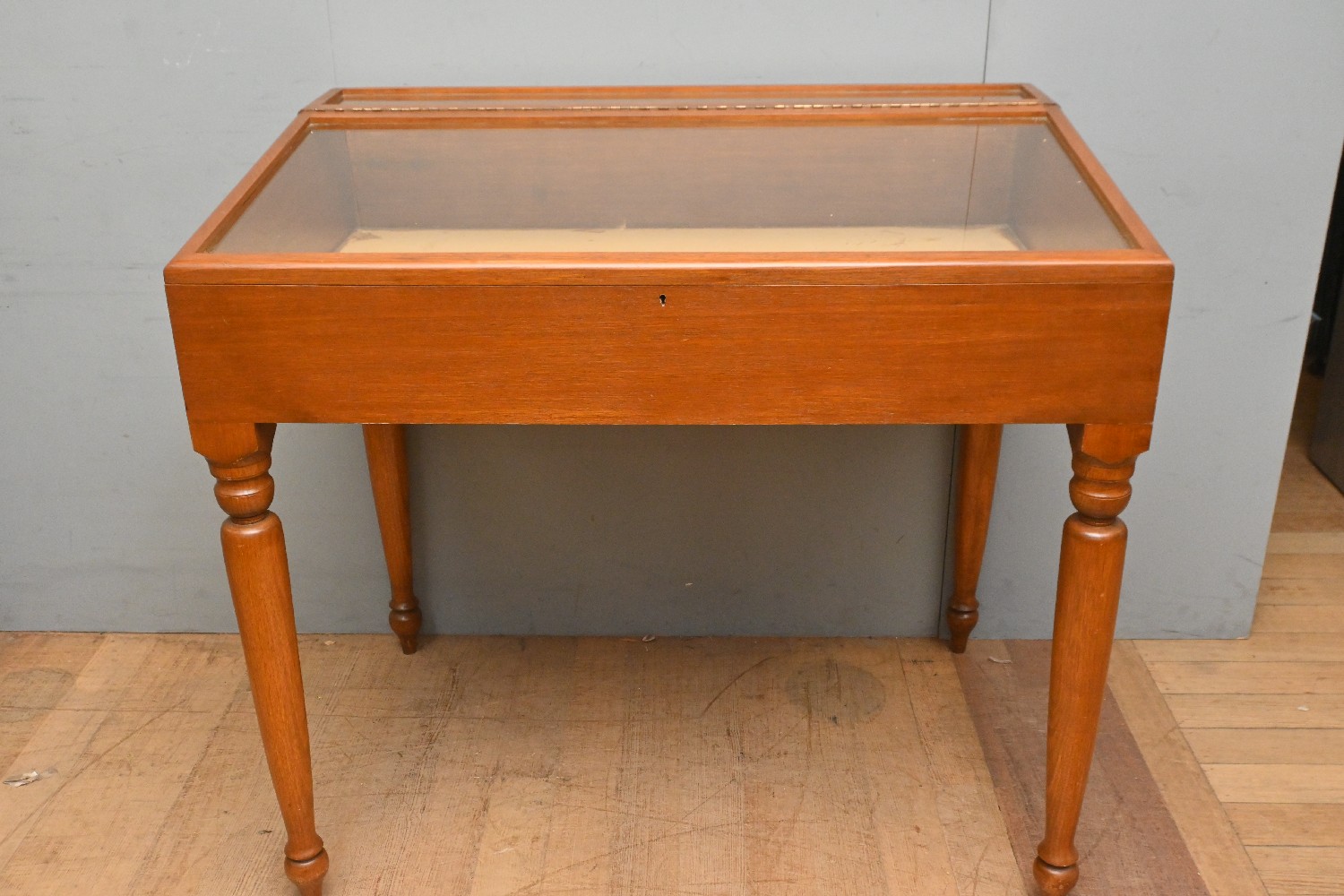 A SOLID AUSTRALIAN OAK SLOPING FLIP TOP DISPLAY CABINET (KEY IN OFFICE) (110CM H X 120CM W X 80CM D) (PLEASE NOTE THIS HEAVY ITEM MUST BE REMOVED BY CARRIERS AT THE CUSTOMER'S EXPENSE. LEONARD JOEL STAFF CANNOT ASSIST CARRYING THIS ITEM) (X-LARGE ITEM)