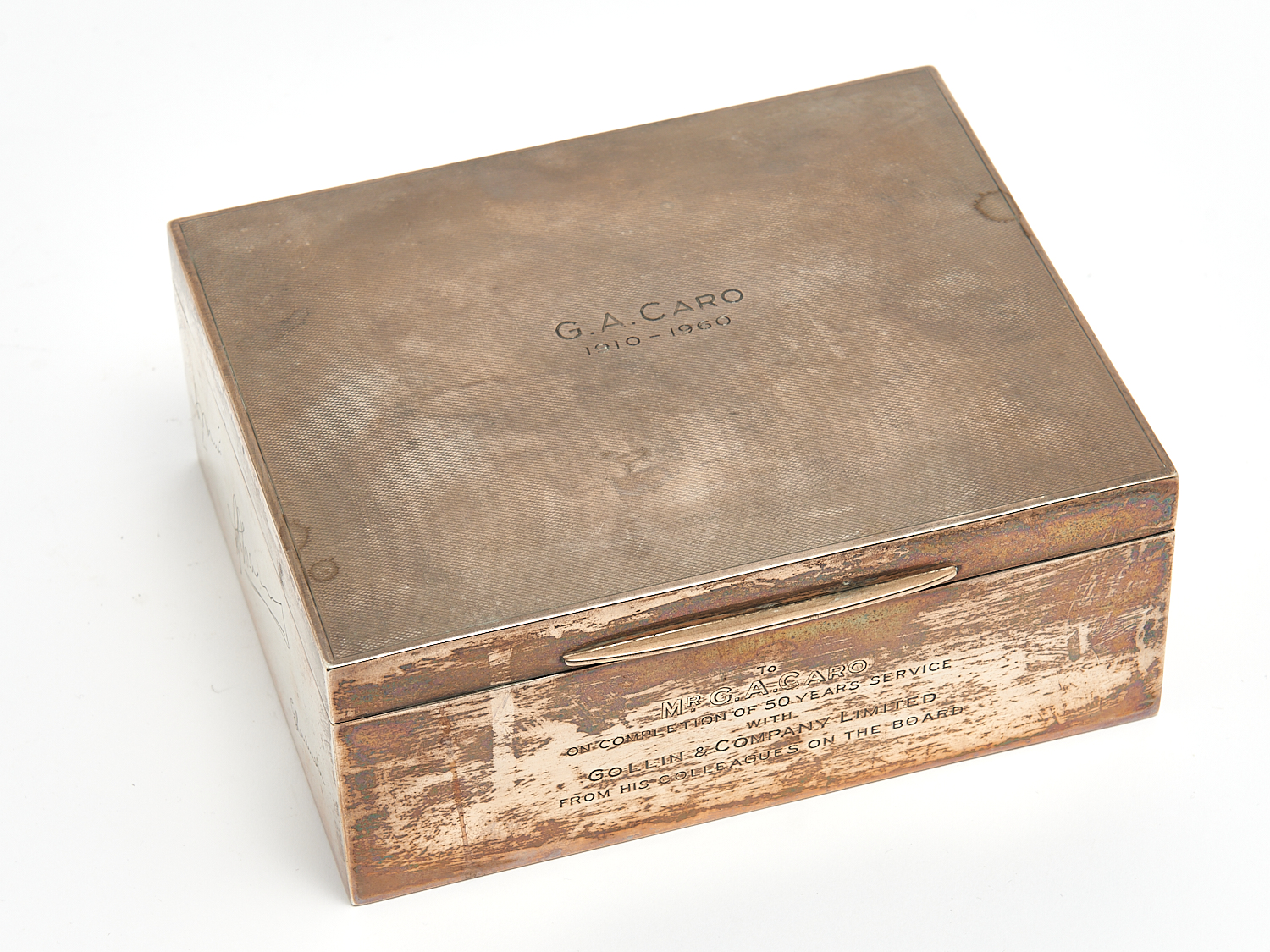 A MID-20th CENTURY STERLING SILVER CIGARETTE BOX, THE INTERIOR CEDAR-LINED, RETAILED BY DRUMMOND & CO., MELBOURNE, 787g W.16.5CM, LEONARD JOEL DELIVERY SIZE: SMALL