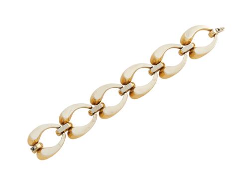 Comprising large openwork links, completed by a tongue and groove clasp, length approximately 195mm, gross weight approximately 66.3 grams.