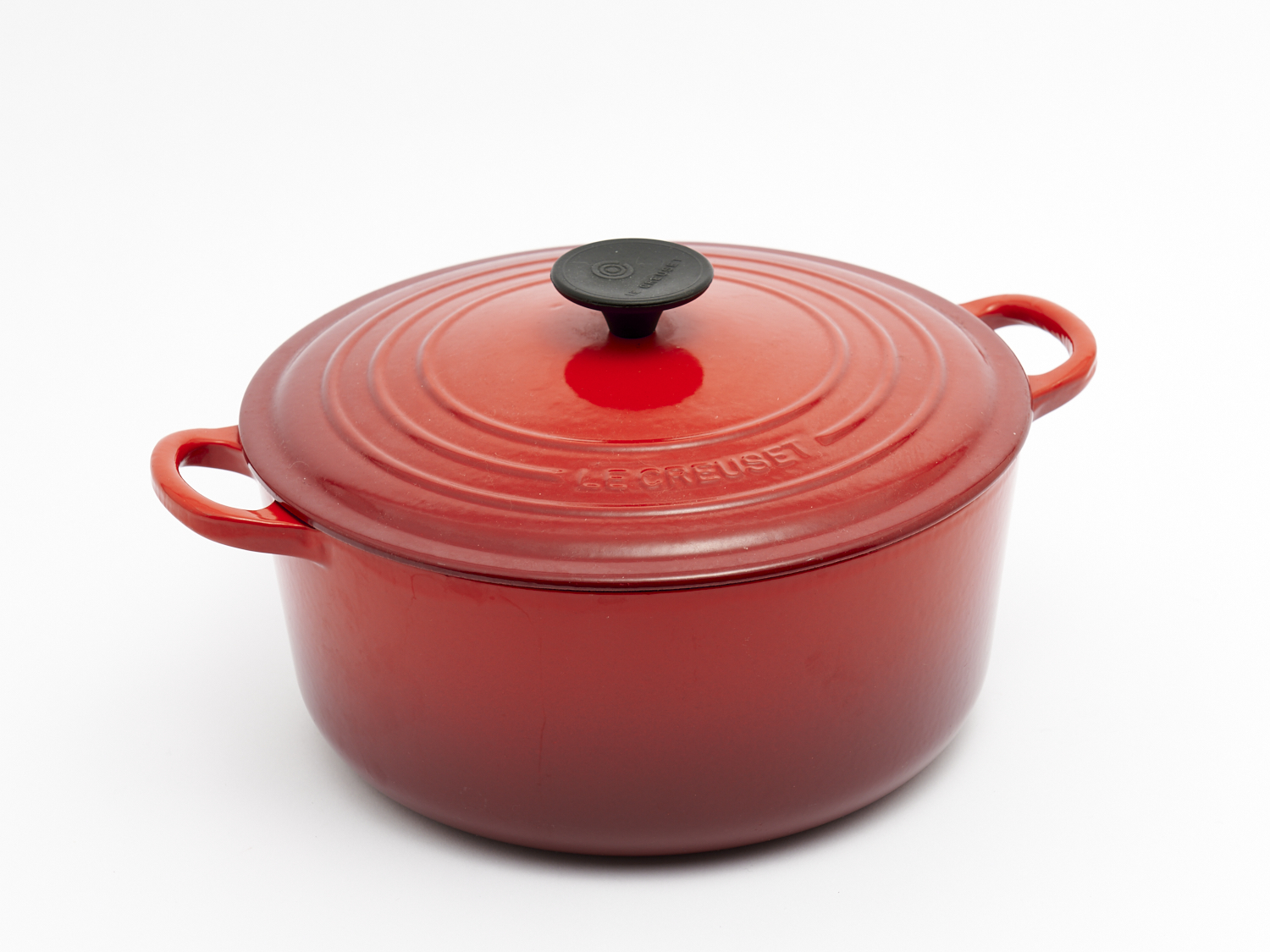 A LARGE LE CREUSET LIDDED CASSEROLE DIA.26CM, LEONARD JOEL DELIVERY SIZE: SMALL